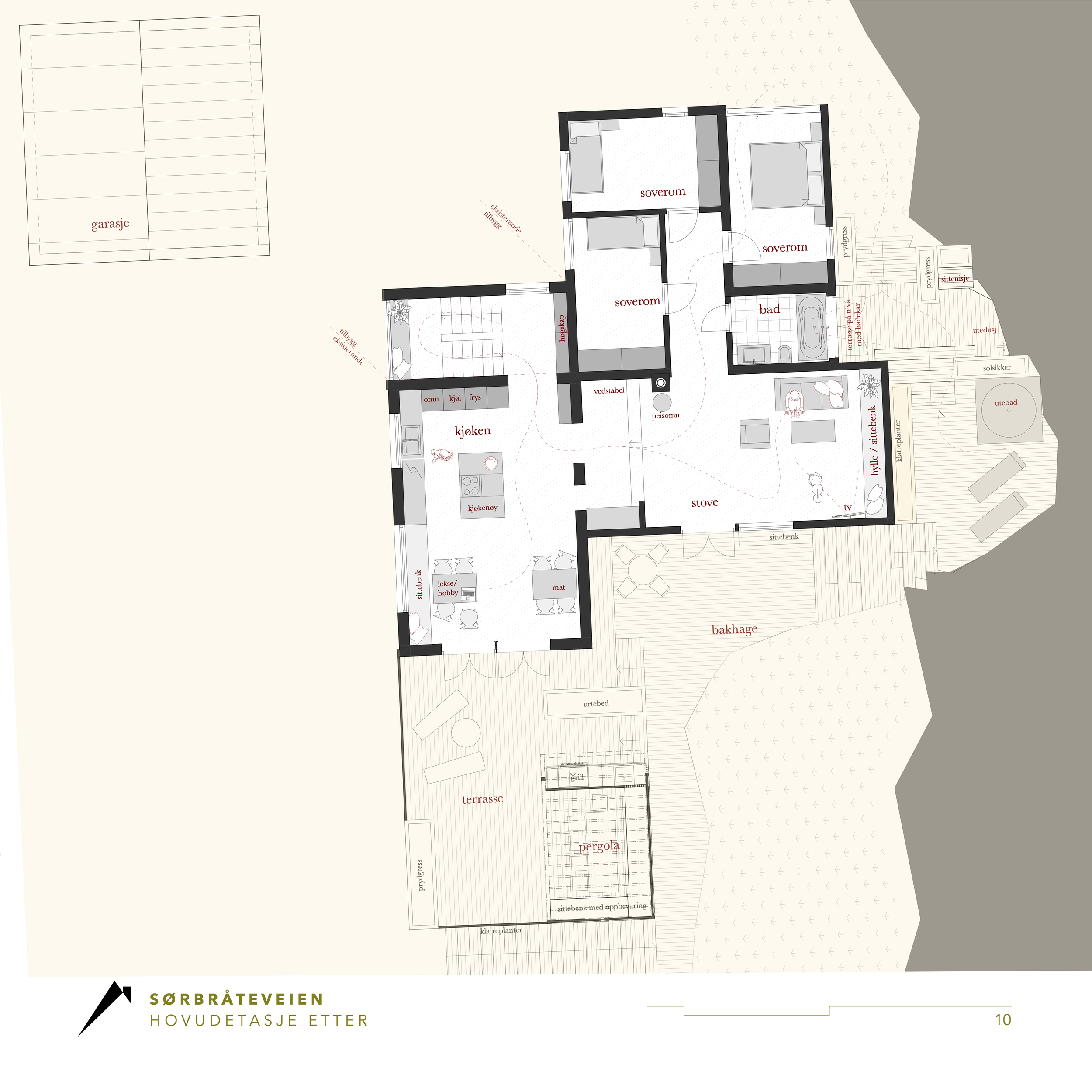 Vi fekk høve til å hjelpe ein familie med å transformere ein eldre bustad som hadde blitt bygd på i fleire omgangar. Over tid hadde huset mista den naturlege flyten sin. Planløysinga var fragmentert, mange rom var gjennomgangsrom, og bustaden hadde berre eitt soverom. Behovet var tydeleg: betre struktur, meir samanheng og fleire rom utan å miste kvalitetane huset allereie hadde.